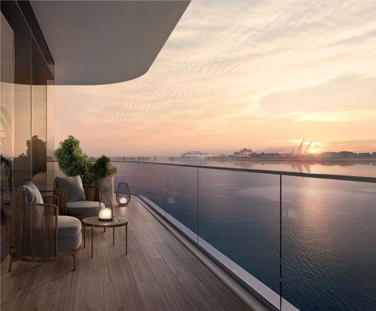 Sunstone is envisioned as an elegant addition to the Abu Dhabi skyline – a refined balance between enhancing the cityscape and standing out as a contemporary landmark on the horizon. The architecture flows around the shoreline, with layered terraces and balconies that echo the movement of water. At podium level, the building connects directly to Makers Promenade, a 1 km climate-controlled waterfront promenade lined with curated retail, F&B and leisure destinations, as well as to Makers Beach just steps away from the residences.
