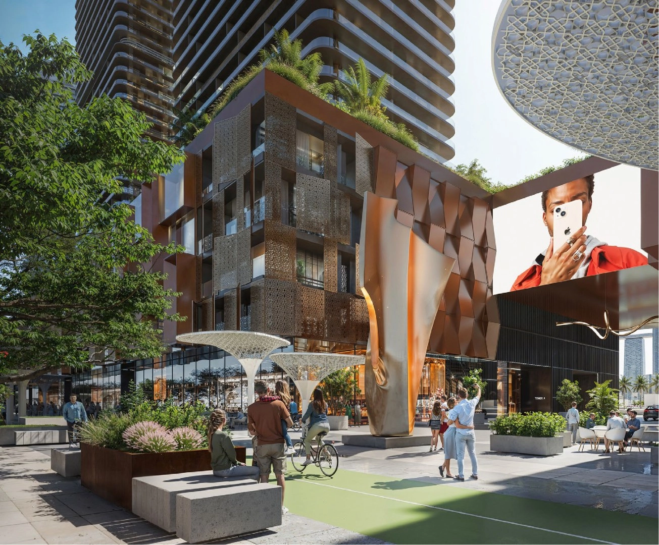 Sunstone offers a carefully curated collection of amenities designed for a balanced lifestyle. Residents can relax on the generous pool deck overlooking the water, train in the state-of-the-art gym, or unwind in the private cinema and high-tech entertainment hub. A versatile multipurpose room supports everything from social gatherings to informal work sessions, while landscaped gardens and outdoor seating areas provide calm green pockets to escape the city. Beyond the building, Makers Promenade weaves together over 100 outlets, art installations, open-air galleries, shaded plazas, cycling tracks and walking paths, extending the Sunstone lifestyle into a dynamic waterfront neighbourhood.
