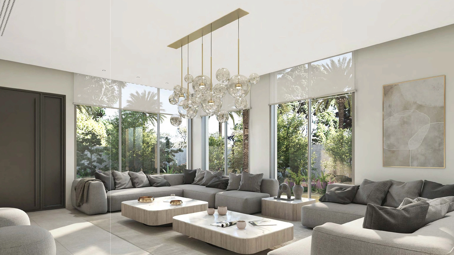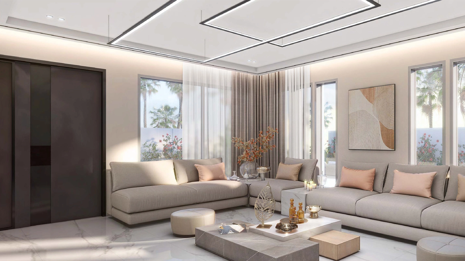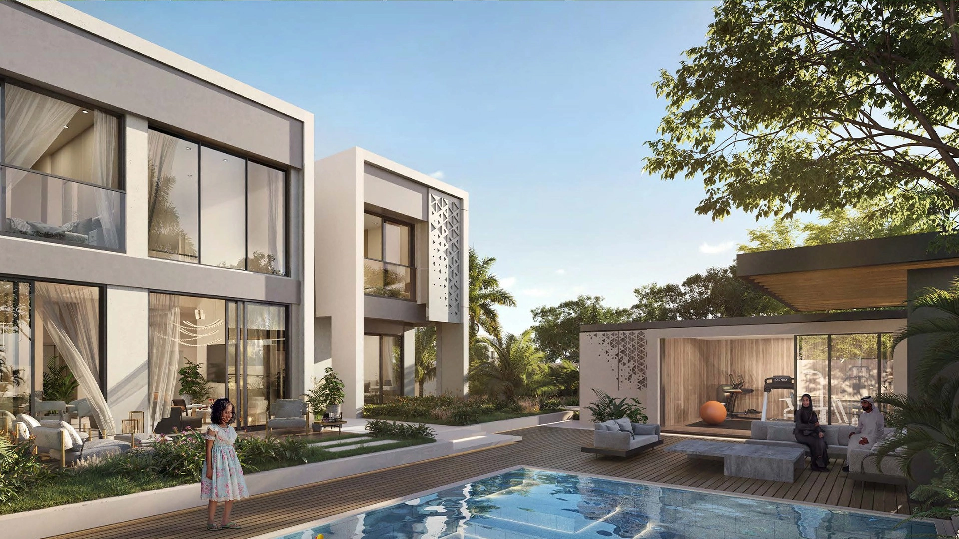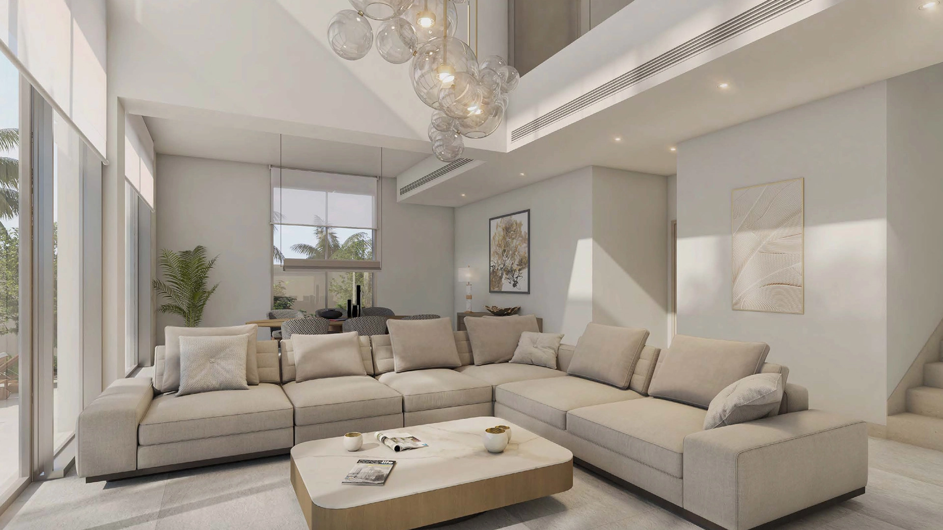 The design plans prioritise space and flow, featuring open kitchens that seamlessly connect with living and dining areas, which lead to outdoor spaces. The layout includes options for storage, maid’s rooms (in select units), and work-from-home spaces to help keep life organised. Finishing packages combine porcelain floors with timber accents and quartz countertops. The built-up area (BUA) ranges from approximately 2,519 to 3,918 square feet, and the properties come with generously sized plots.