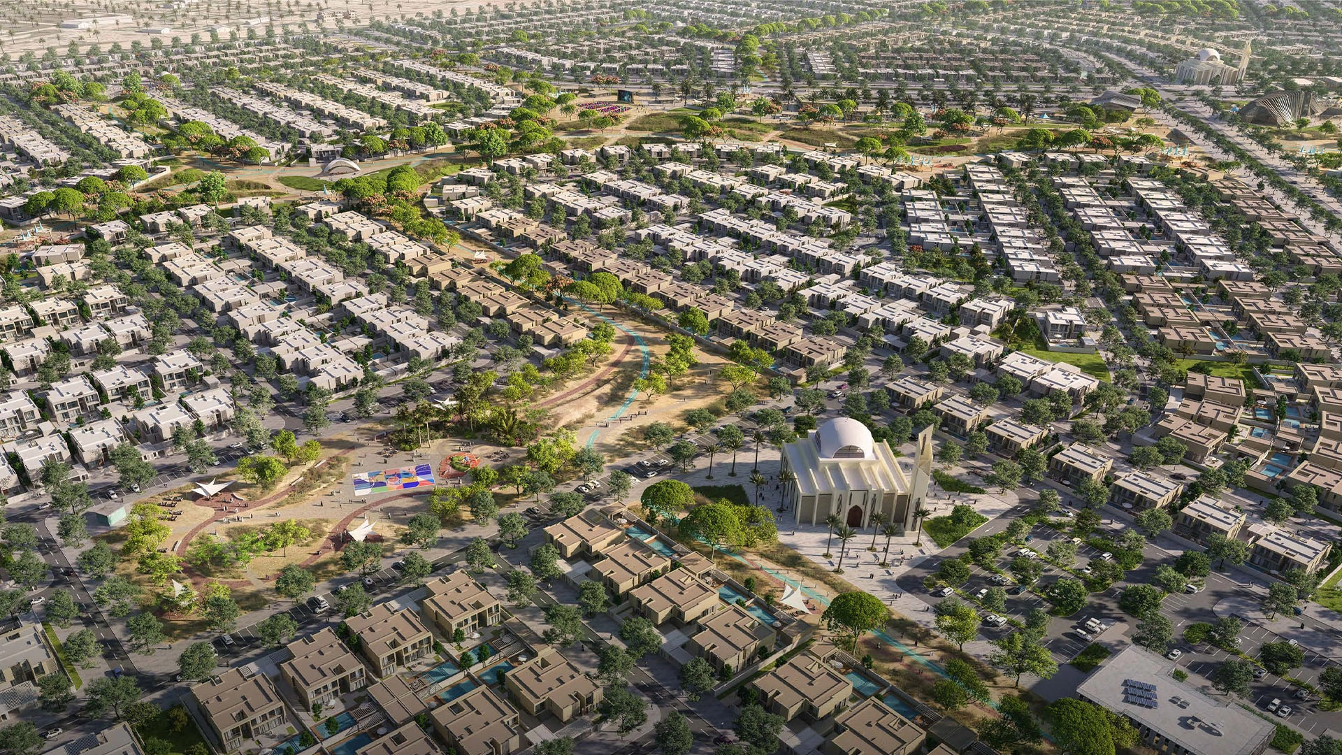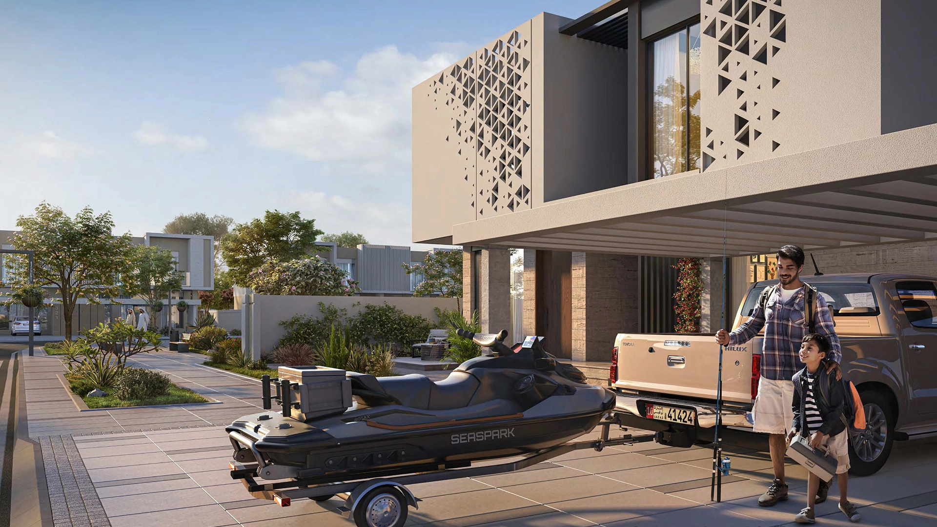 Days revolve around a central park, play gardens, and shaded pathways. You can enjoy riding at the private equestrian centre, explore the arts market, or gather at the community majlis. Nearby, you'll find a sports centre, clinic, wedding hall, cafés, and local shops. Smart meters, solar water heating, and recycling stations support a more eco-friendly lifestyle.