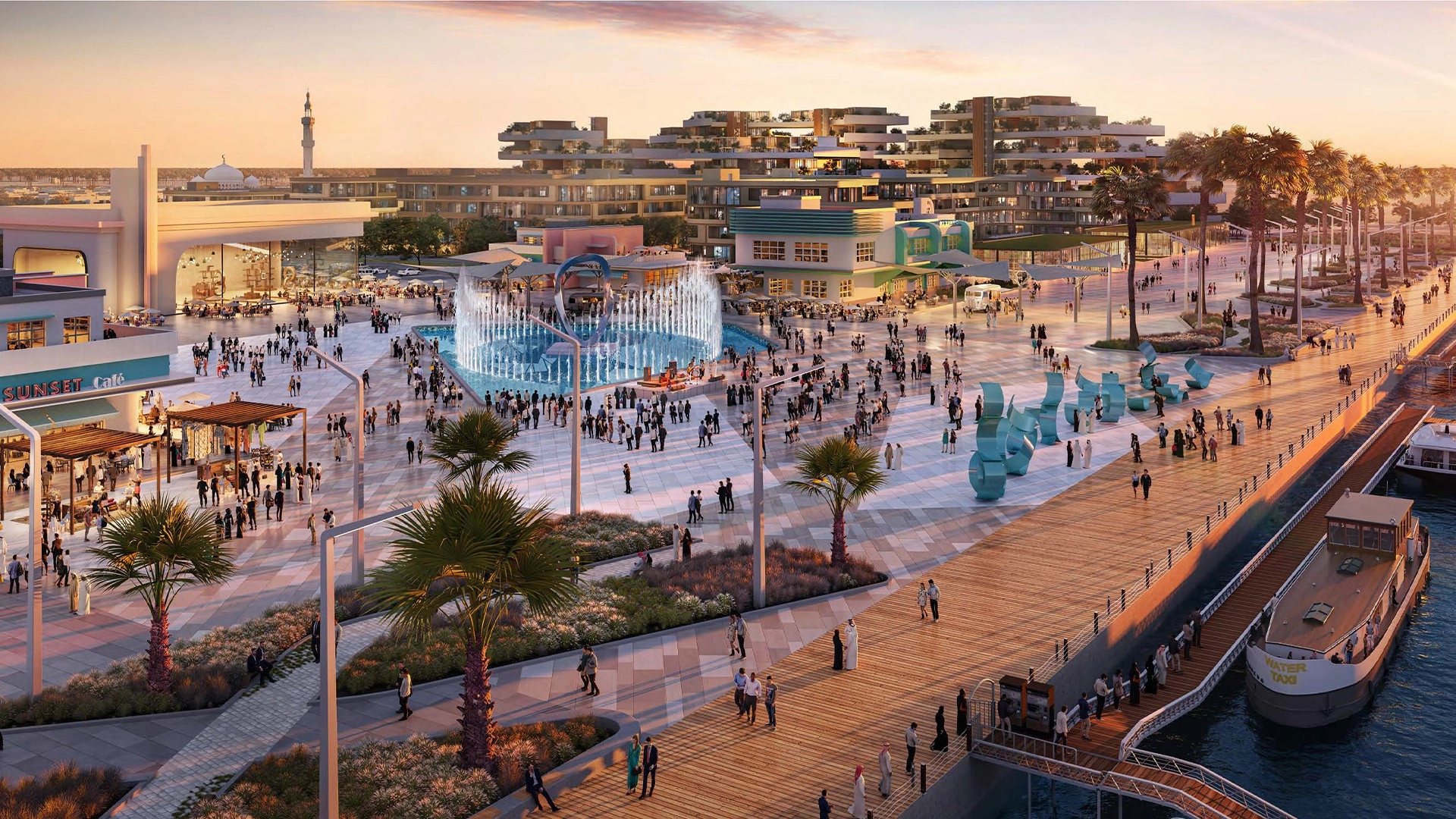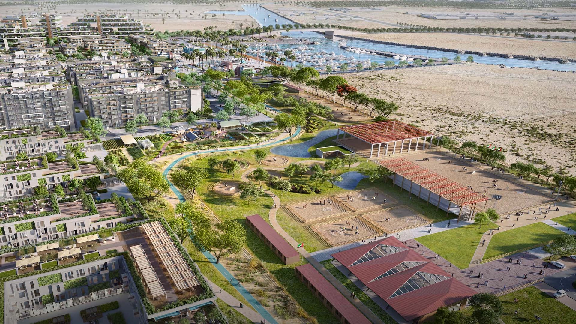 The design features calm, modern lines with light stone, warm tones, and expansive glass that beautifully frame the sky and water. Shaded terraces and cool roofs contribute to a comfortable climate. The streets are carefully landscaped, and individual plots offer a sense of privacy. The overall result is a low-rise, human-scale environment that feels ideally suited for everyday life by the sea.