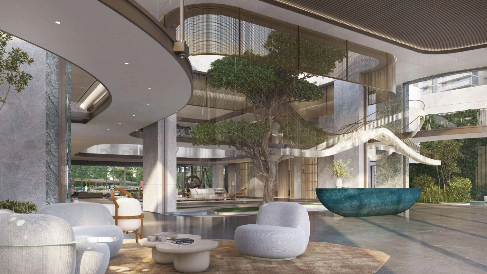 Residents can enjoy a tiered pool near the lobby, relax in cabanas, or visit an infinity pool with stunning skyline views. The amenities include a gym, a yoga deck, an outdoor co-working garden, a kids' club, a play lawn, an entertainment room, and sunken lounges, all overseen by a 24-hour concierge.