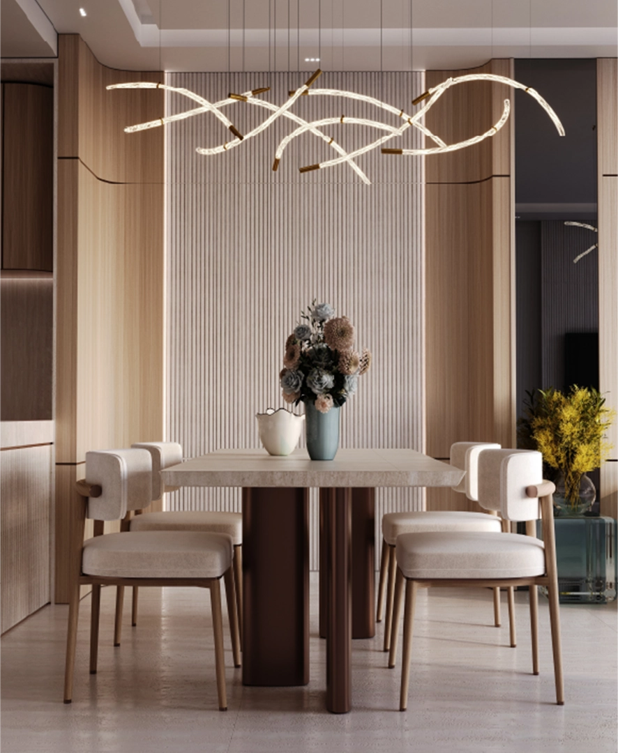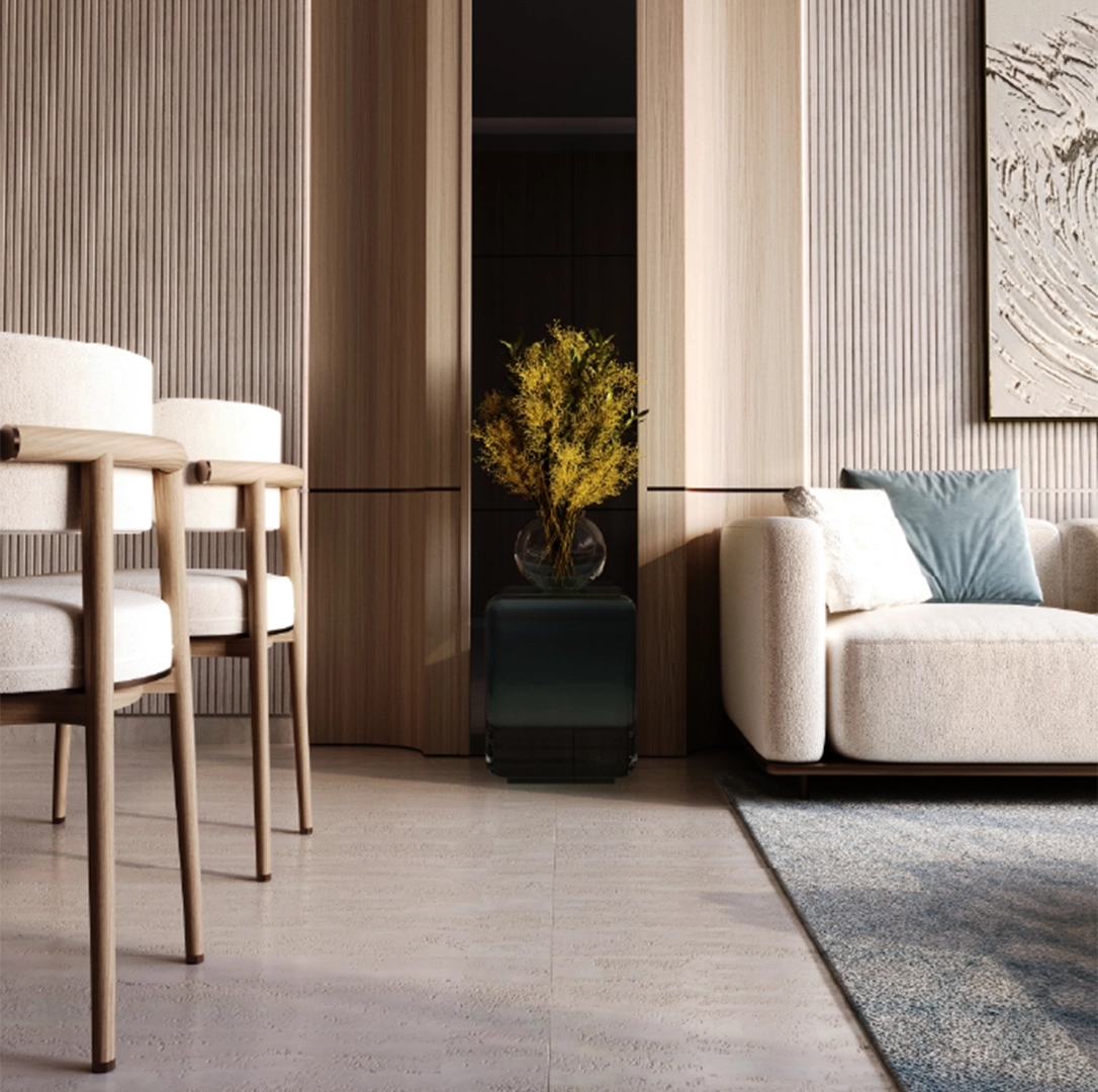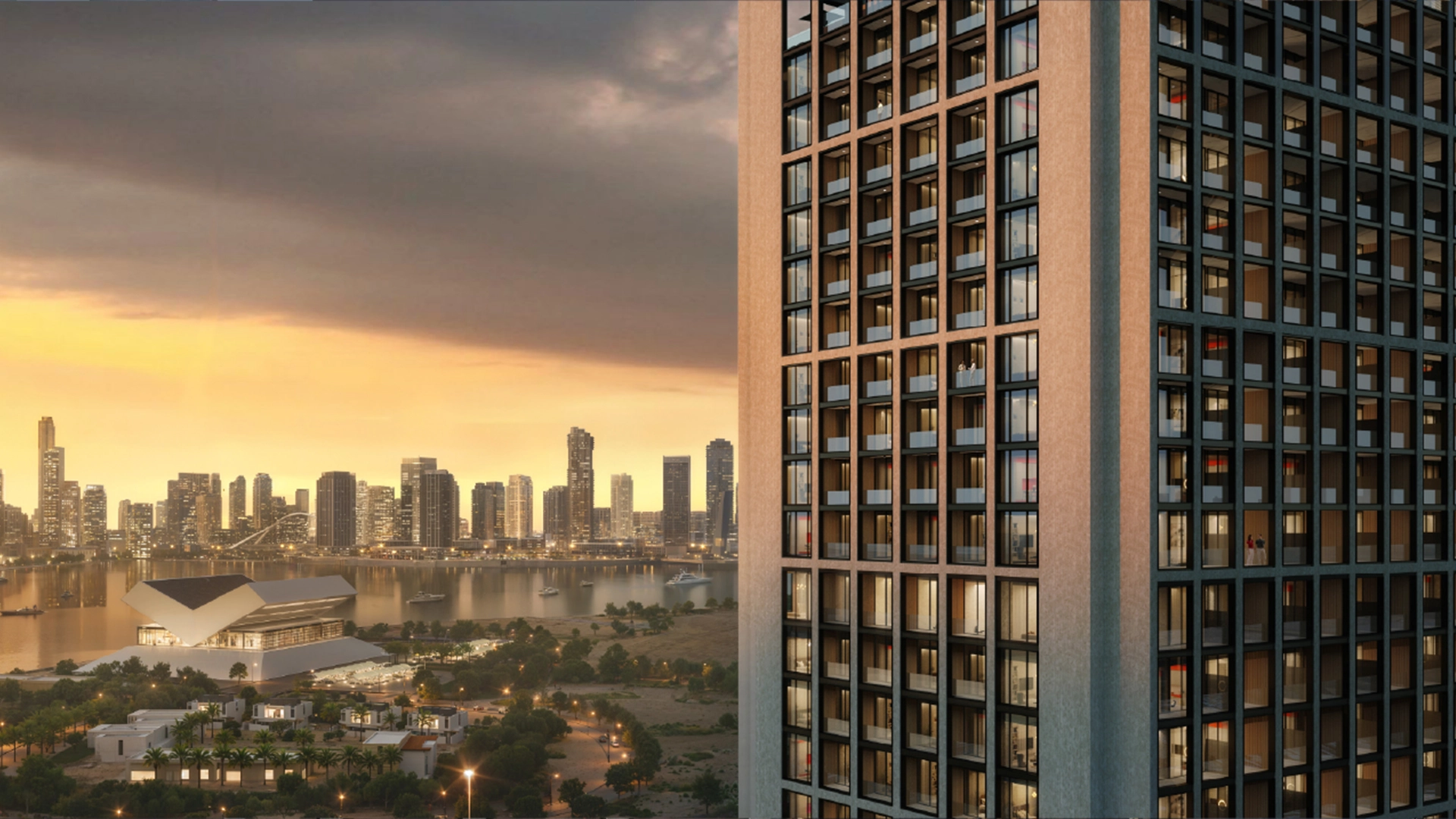The apartments offer breathtaking views of the Burj Khalifa, Dubai Creek Harbour, and the surrounding city. They feature tall windows, open living spaces, premium stone finishes, high-quality joinery, and integrated appliances. Smart home technology is included to manage lighting, climate, and access. Additionally, ample storage and practical utility areas ensure everyday convenience.