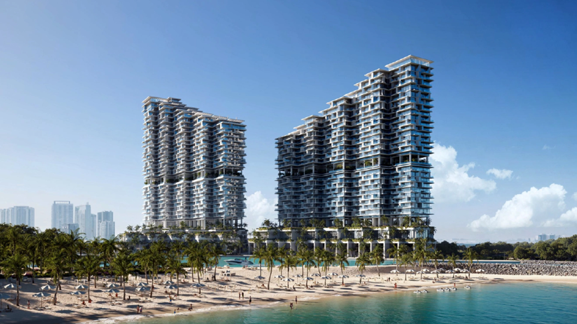 Located along a stunning 800-meter shoreline between Dubai and Abu Dhabi, Jacob & Co Beachfront Living is a master community valued at AED 4.7 billion. This project combines the glamour of haute horology with the luxury of resort-style living. It will feature 457 sea-view apartments, villas, penthouses, Sky Mansions, and beachfront mansions, all designed in collaboration with the renowned New York jewellery and watch brand. The completion date is set for the second quarter of 2028, with apartment prices starting at AED 3 million and penthouses beginning at AED 22 million.