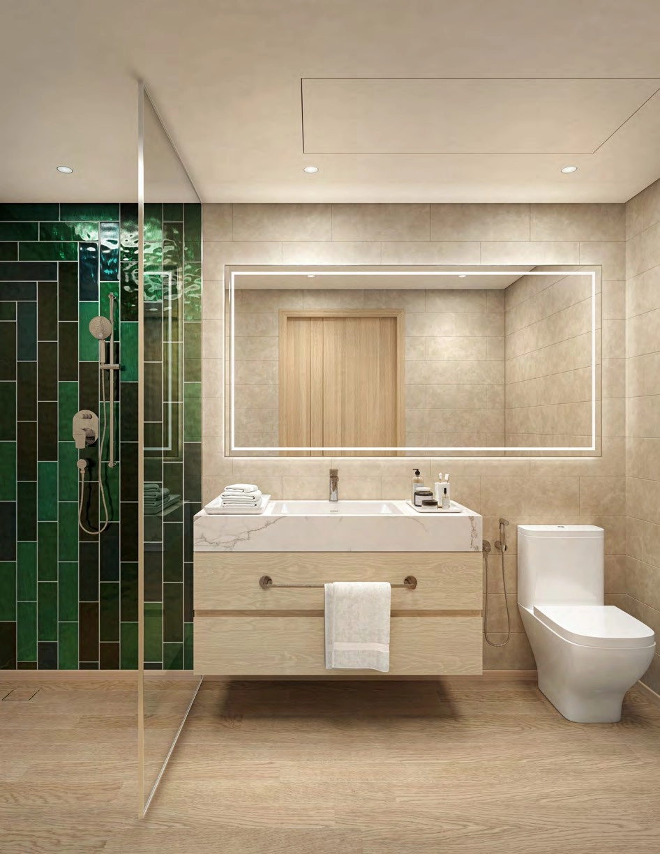 Grove Beach Views features homes ranging from 494 to 2,178 sq ft with open-concept layouts, spacious balconies, and floor-to-ceiling windows. Each residence includes modern kitchens, high ceilings, smart-home technology, and elegant finishes that reflect a sense of quiet luxury.