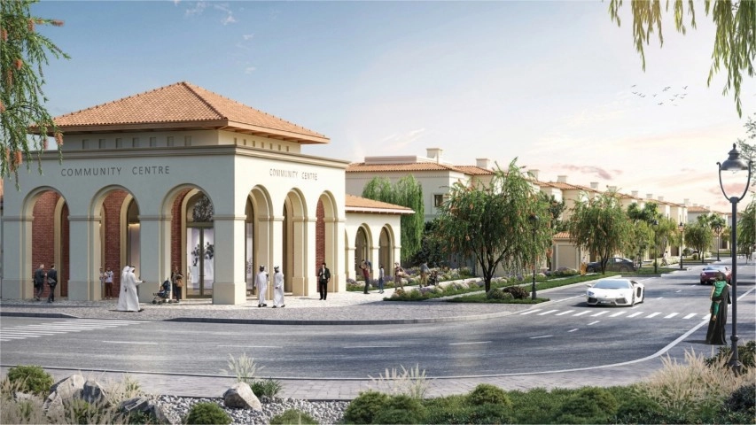 Life centres on greenery, water and wellness. Residents access the main Clubhouse with pools, sports and recreation, plus a lakeside trail network for walks, runs and cycling. The Town Center hosts cafés, restaurants and retail. Community amphitheatres, Sunrise and Sunset Plazas, prayer facilities and schools create a complete neighbourhood experience within a short walk from home.