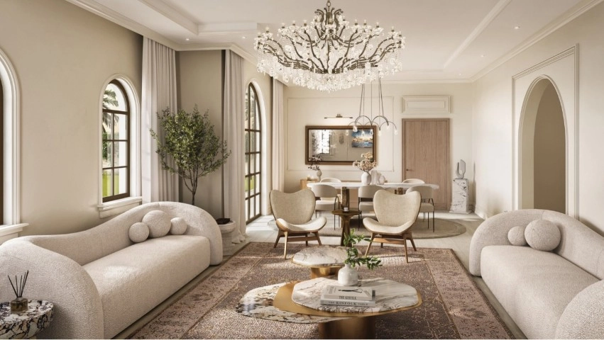 The homes are characterized by open-plan living, thoughtfully designed kitchens, and elegant finishes. A premium interior package is included as standard, while an upgraded option features polished marble, hardwood flooring, specialty paints, and designer hardware. The layouts of the larger villas also include maid’s and driver’s rooms for enhanced practicality and daily convenience.