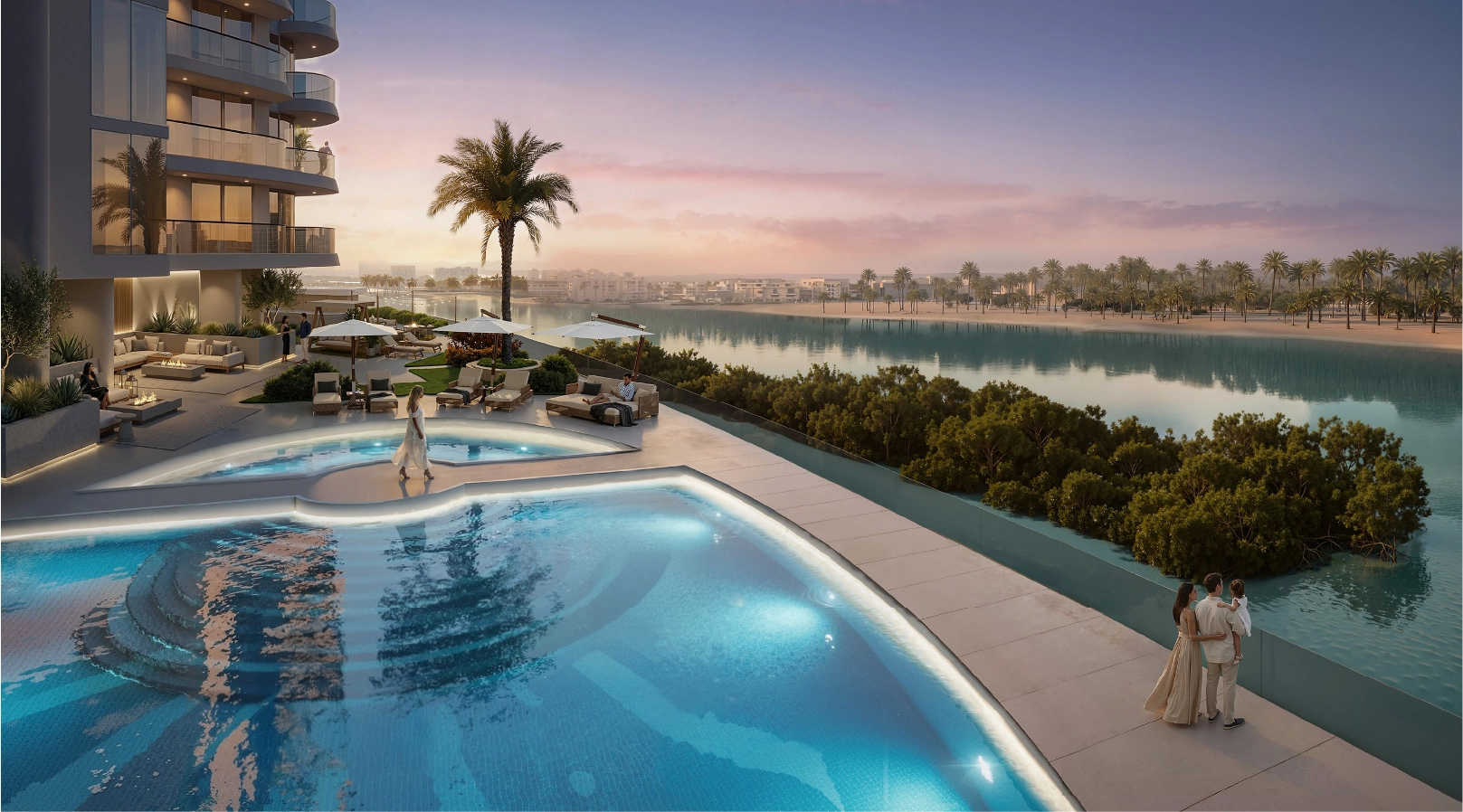 The resort-style podium features an adults-only pool with views of the mangroves, a shaded children's pool, landscaped courtyards, a gym, spa and therapy rooms, a community lounge, BBQ areas, and event spaces. Waterfront retail options and on-site services offer daily convenience. Additionally, the boardwalk, nature trails, and paddle routes encourage outdoor living.