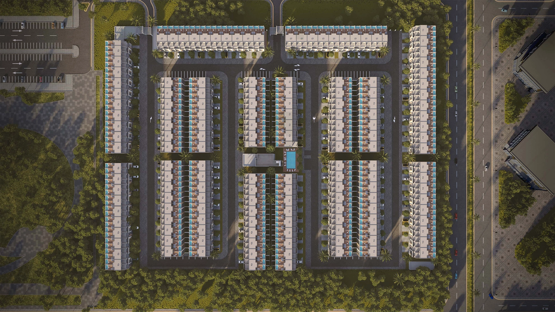 A low-density townhouse development featuring private pools meets strong demand from families and offers attractive rental potential. Payment options include a 10% down payment with construction-linked instalments and 39% due upon handover. The airport, major employment hubs, and leisure areas are located within 9- to 18-minute drive.