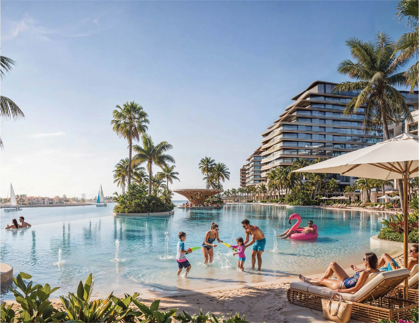 The development consists of two residential towers with apartment sizes ranging from approximately 566 to 1,013 sq ft. Its architecture focuses on maximizing water views, open balconies, and a strong connection between indoor and outdoor living. Residents benefit from a wide range of amenities including a waterfront promenade, jogging and cycling tracks, landscaped parks, open-air fitness zones, children’s play areas, community lounges, multi-purpose courts, retail and dining access, and 24/7 security.