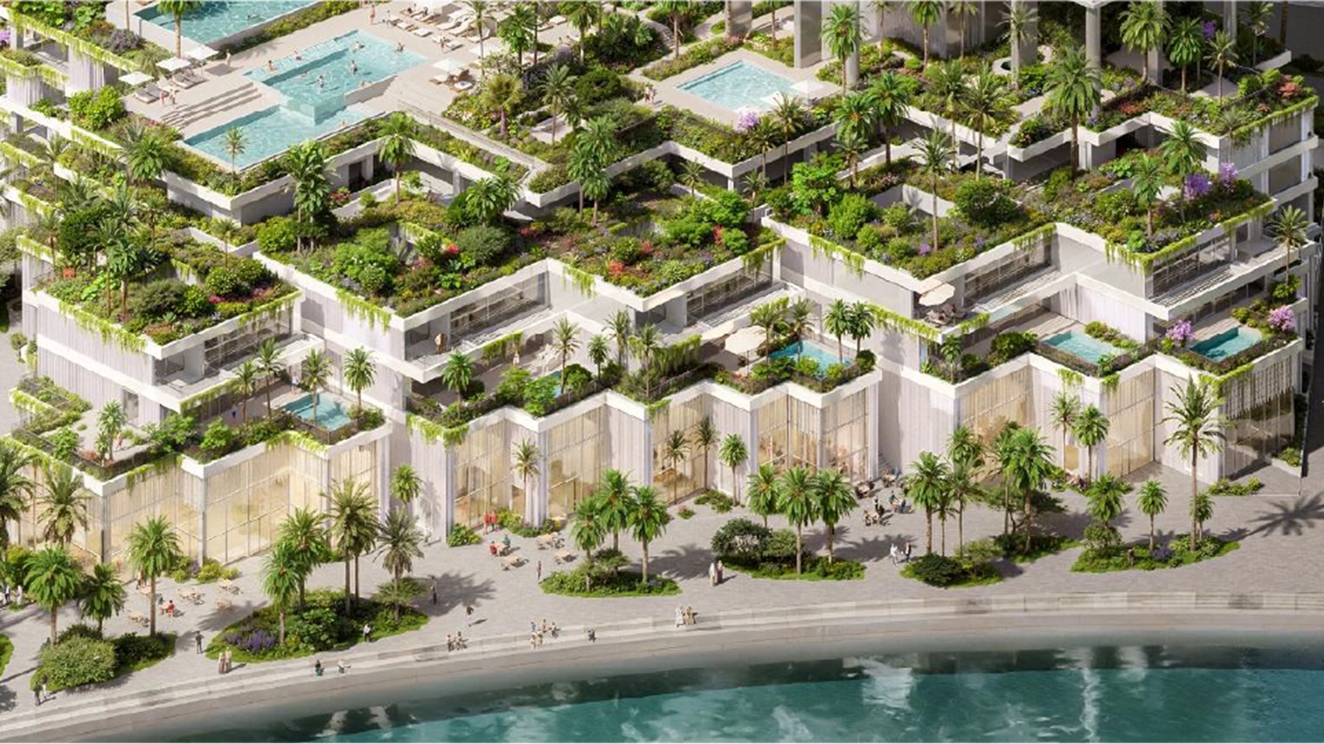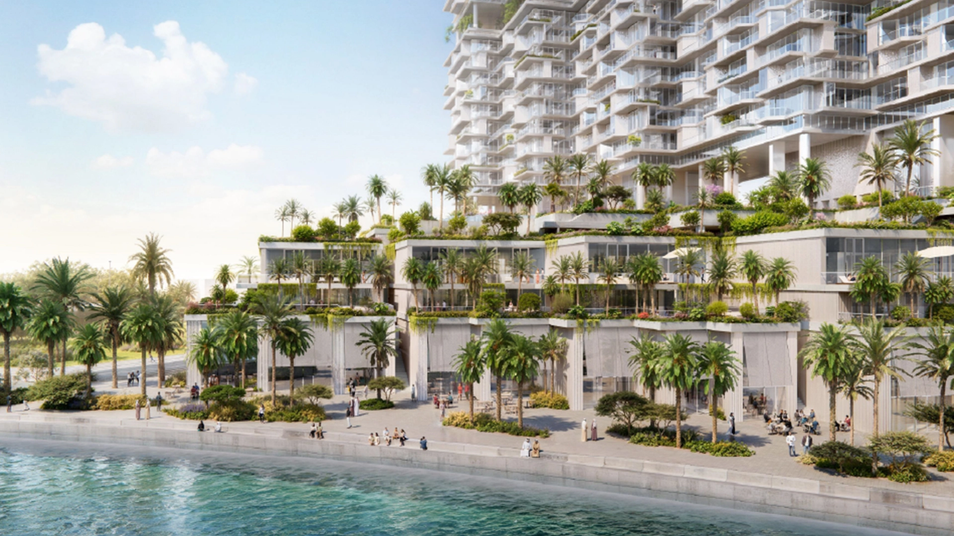 This profile features a clean, modern design with ample glass and tiered terraces that enhance views and natural light. Warm metal and stone accents soften the tower's edges. The use of shading, high-performance glass, and efficient mechanical, electrical, and plumbing (MEP) systems aims to reduce operating costs and create a more comfortable microclimate.