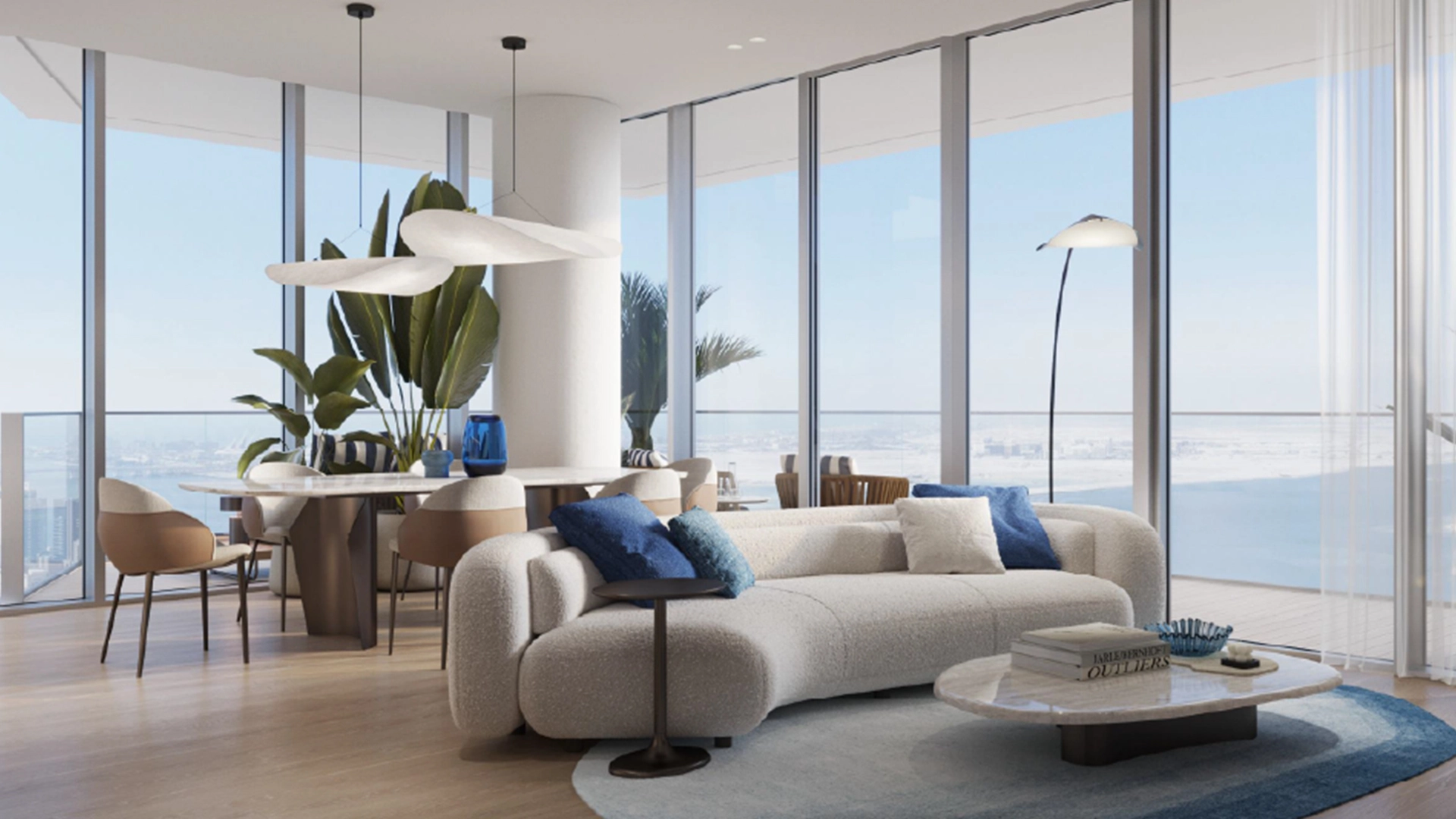 Spacious, open floor plans feature full-height windows and ample storage solutions. The interiors include carefully curated finish palettes in light and dark tones, along with engineered flooring, stone countertops, fitted wardrobes, and integrated kitchen appliances. Some layouts also offer study or maid’s rooms and double-aspect living areas. Additionally, the homes are equipped with innovative technology for controlling lighting, climate, and access.
