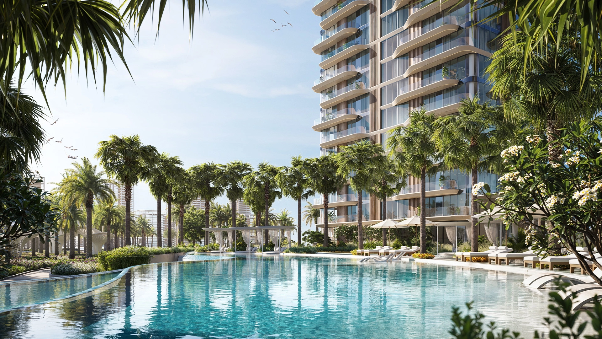 The development offers a curated collection of 1- to 4-bedroom apartments, along with a limited number of signature penthouses, designed for those seeking elevated space and privacy. Each residence is planned with generous proportions, open-plan living areas, and wide panoramic windows that connect interiors seamlessly with the surrounding water and skyline.