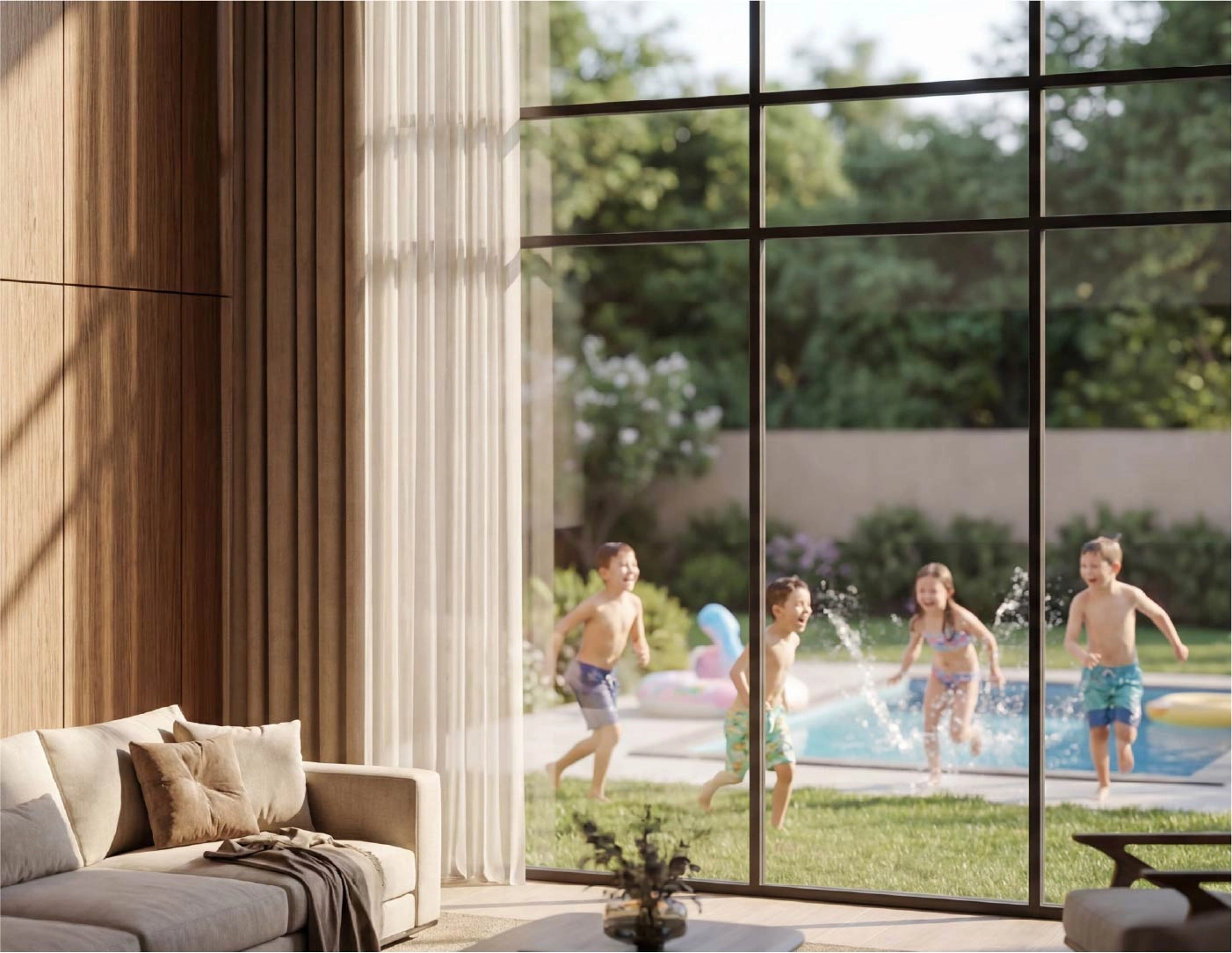 The project offers 3 and 4-bedroom garden villas with built-up areas ranging from 1,987 to 3,883 sq ft. The homes feature clean architectural lines, layered volumes, private gardens, and elevated terraces that extend living beyond the interior. Inside, the layouts are planned for comfort and flexibility, with spacious living areas, formal rooms, family zones, maid’s rooms, generous storage, and lift access in selected units.