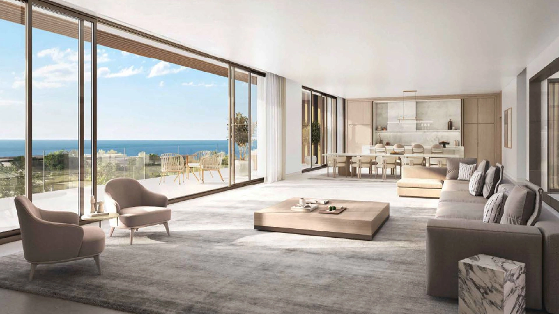 The architecture follows a contemporary coastal language inspired by the “golden hour,” with a strong emphasis on glass, horizontal proportions, and deep outdoor terraces. Homes are designed to sit naturally within the terrain, allowing each residence to inherit its own horizon line while maintaining visual harmony across the hillside. Large openings frame sea and canal views, while the stepped elevations integrate seamlessly with shoreline gardens and outdoor living areas.