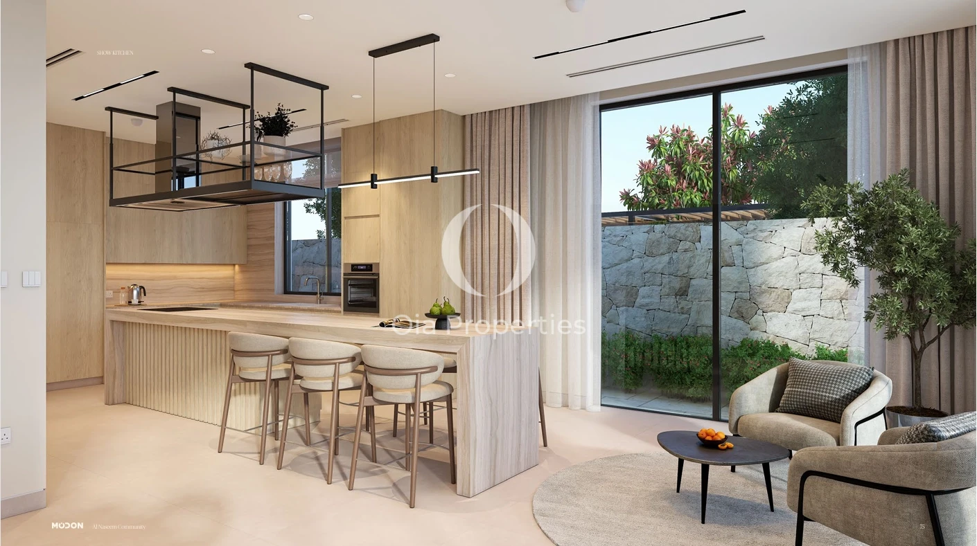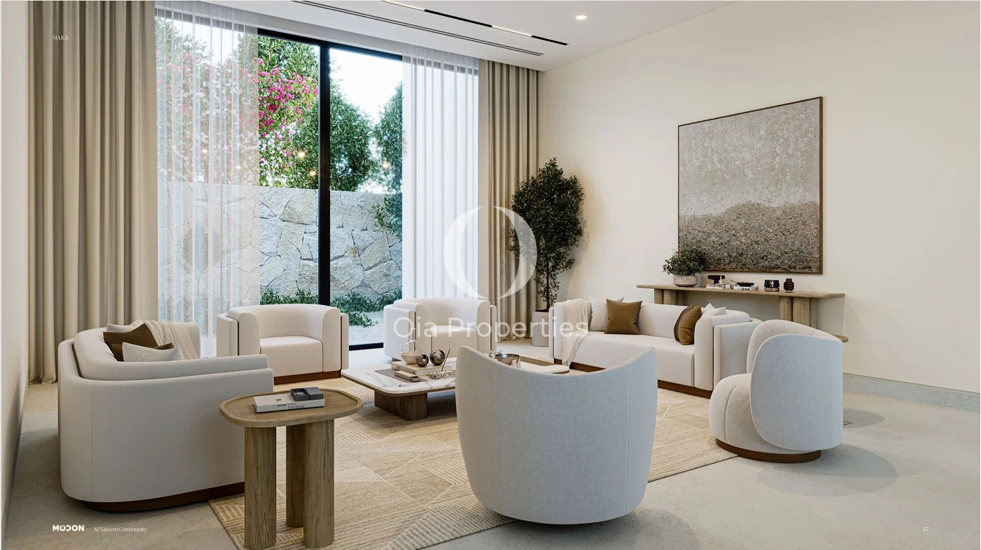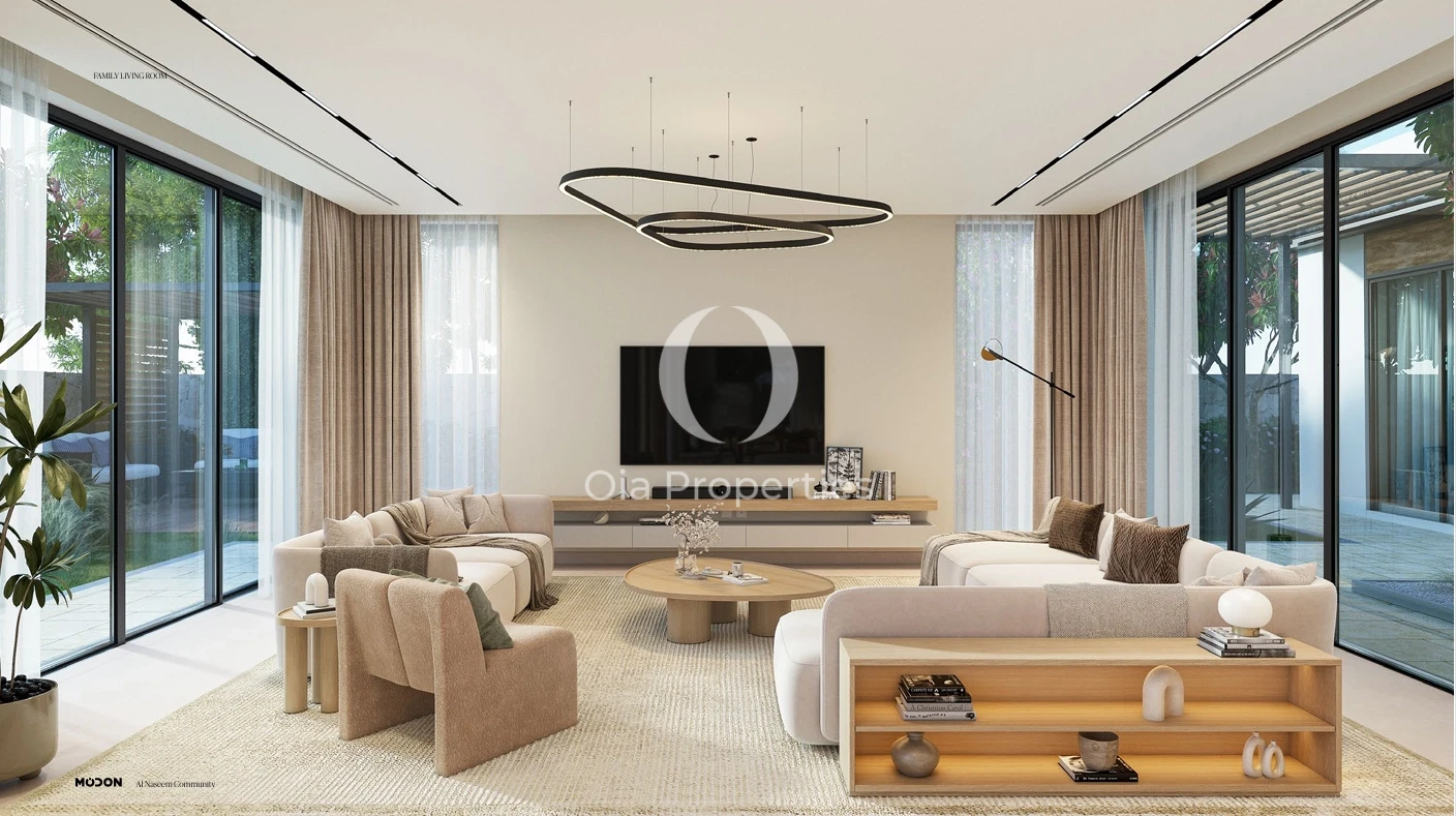 Al Naseem villas have an attractive interior and large patios. You can choose a Californian or Contemporary style frontage. The villa has earthy tones, oak, and porcelain accents throughout, and it has a vast and light interior with a large family room and majlis.