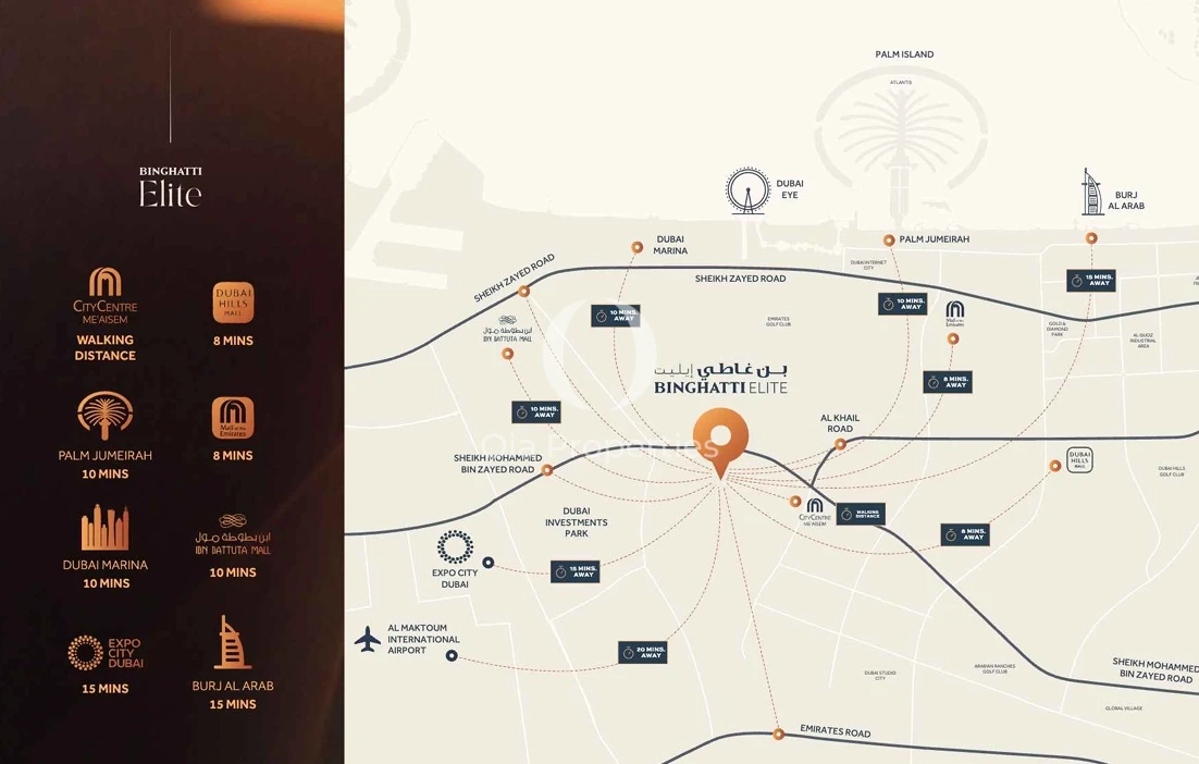 Contact Oia Properties today to learn more about this off-plan studio in Binghatti Elite and secure your unit at the best price.