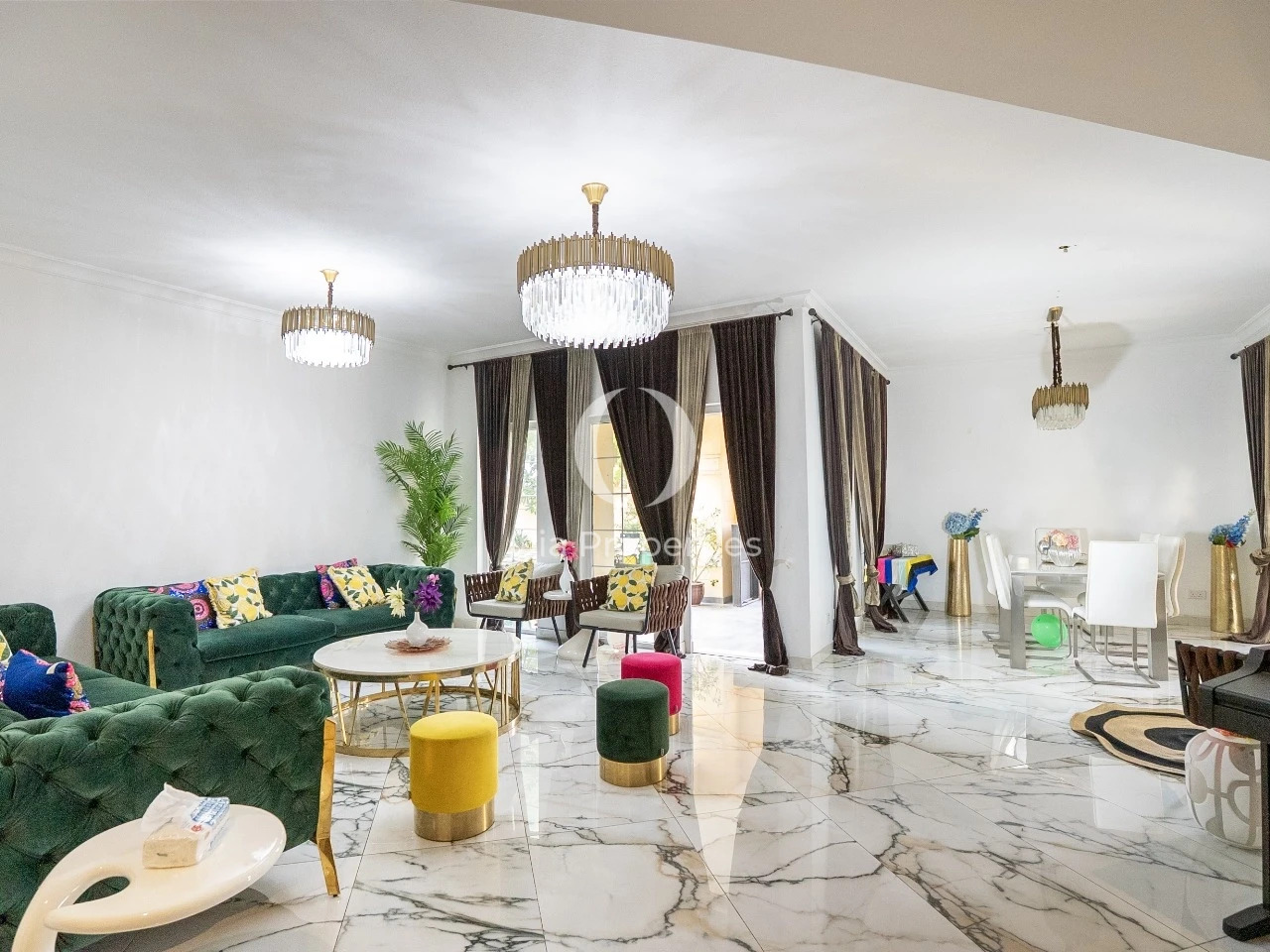 Discover elegant family living in this fully furnished 4-bedroom semi-detached villa in the serene Al Waha Community. Set on the largest plot in the neighborhood, this single-row corner villa offers unmatched privacy, a massive pool, and the best location in the cluster — perfect for families seeking comfort and exclusivity.
