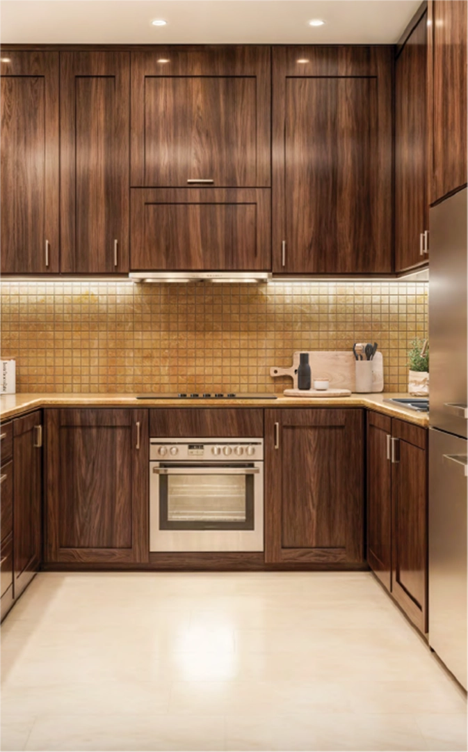 Parquet floors, marble accents, and natural oak tones enhance the spacious layouts of 2 to 5-bedroom homes, which include maids' and laundry rooms. Each residence features built-in wardrobes, Siemens and Samsung appliances, and impressive slab-to-slab heights of 3.5 meters, all contributing to a bright, modern atmosphere designed for family living. Welcome to Vida Residences Saadiyat.