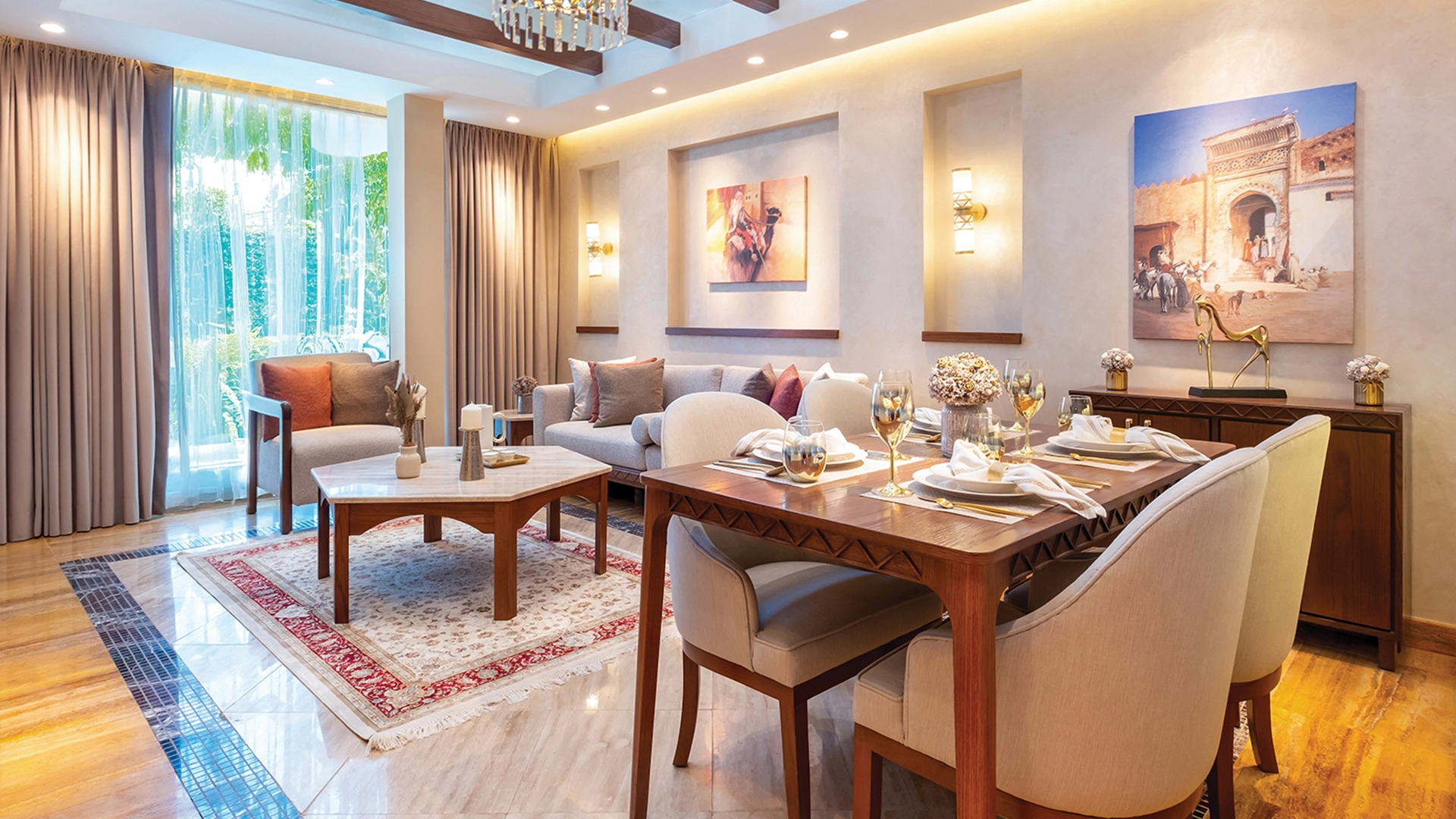 Residents have access to ground and rooftop infinity pools, outdoor fitness areas, a jogging track, a health club, a sauna, and designated kids’ pools and play zones. Additionally, they can enjoy BBQ pergolas, rooftop gardens, and indoor-outdoor lounges. For daily convenience, there are six on-site retail outlets, including a supermarket and a café. These amenities are complemented by valet service, housekeeping, and in-residence dining available on a pay-as-you-go basis.