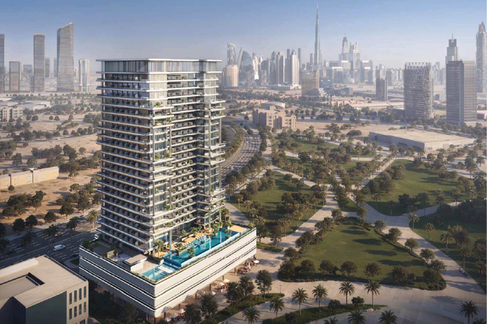 Hillside is located in Dubai Science Park, providing easy access to Al Khail Road, Umm Suqeim Road, and Sheikh Zayed Road. This residential tower features ground-floor retail and is designed to be a serene enclave near the city's bustling centre. The landscaped podium edges and a thoughtfully planned arrival sequence create a peaceful and elevated atmosphere.