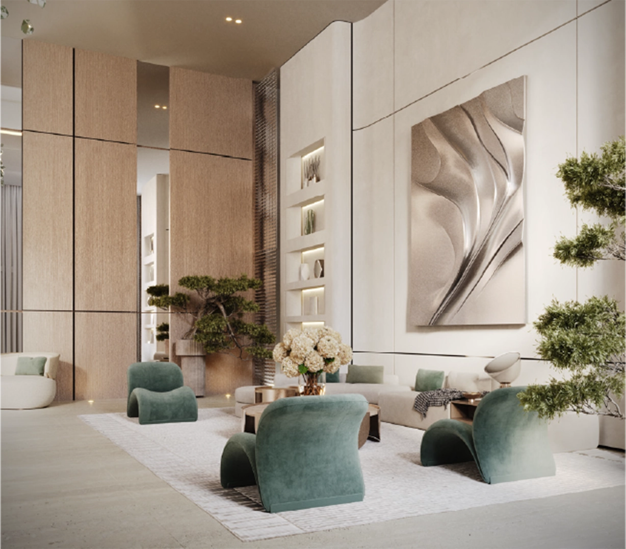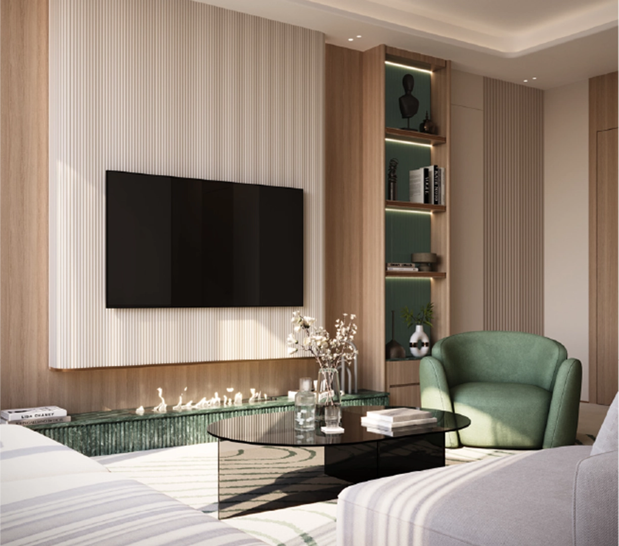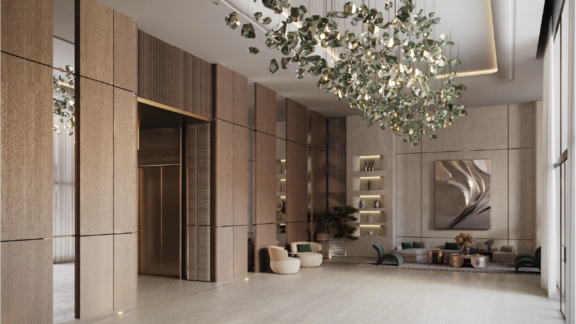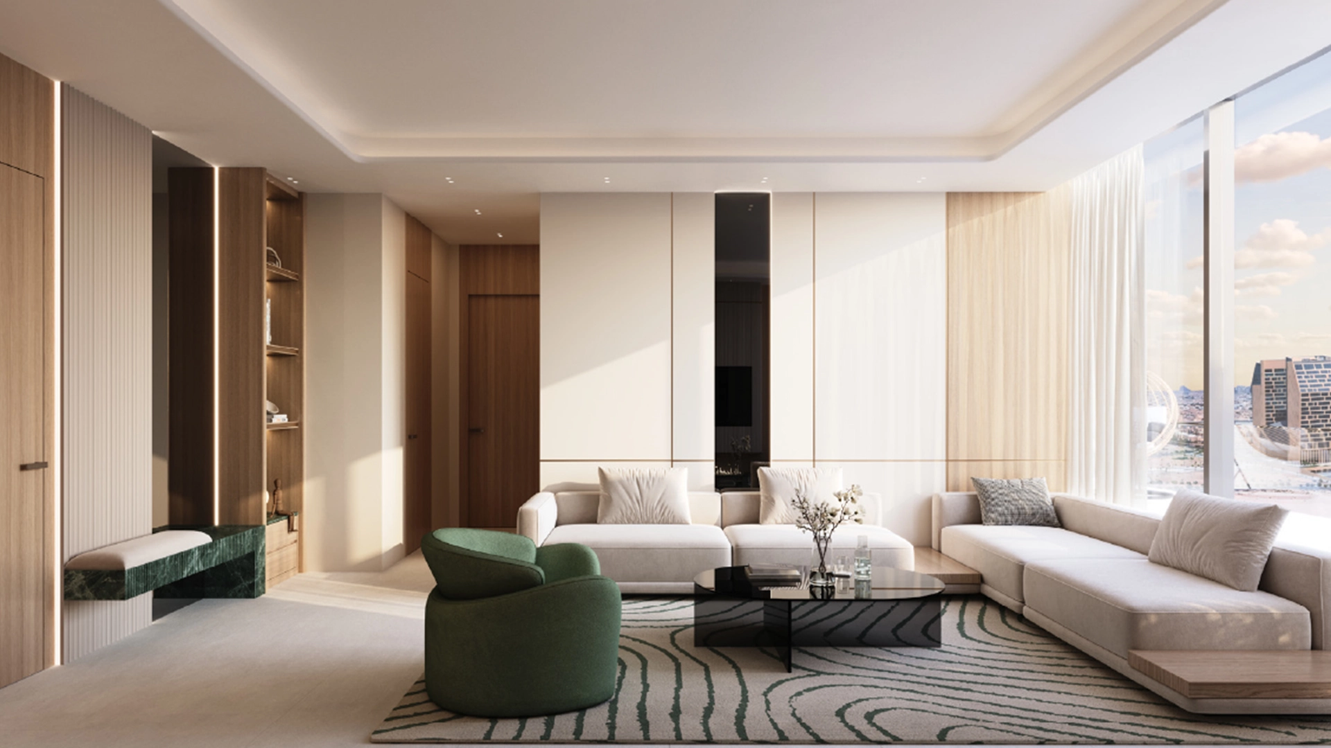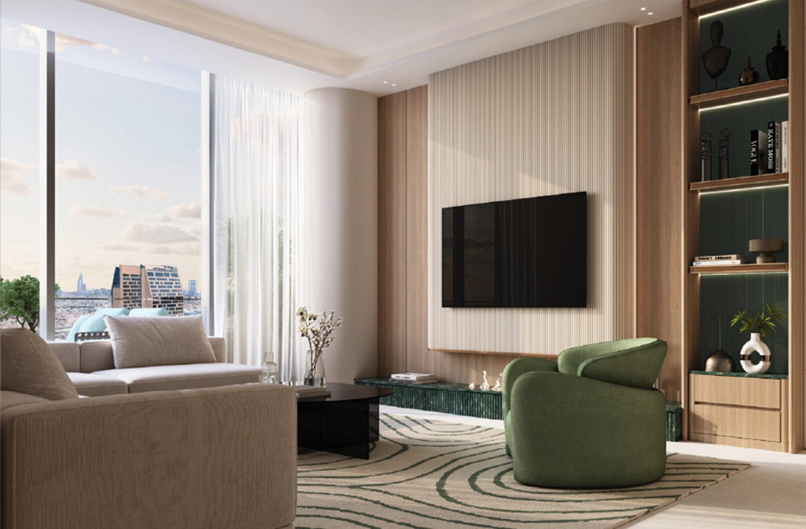 Studios and one-bedroom apartments are designed for efficient, bright living. Large windows, clean lines, and practical storage create open and usable spaces. Ground-level retail meets daily needs, while the double-height lobby adds a sense of prominence.