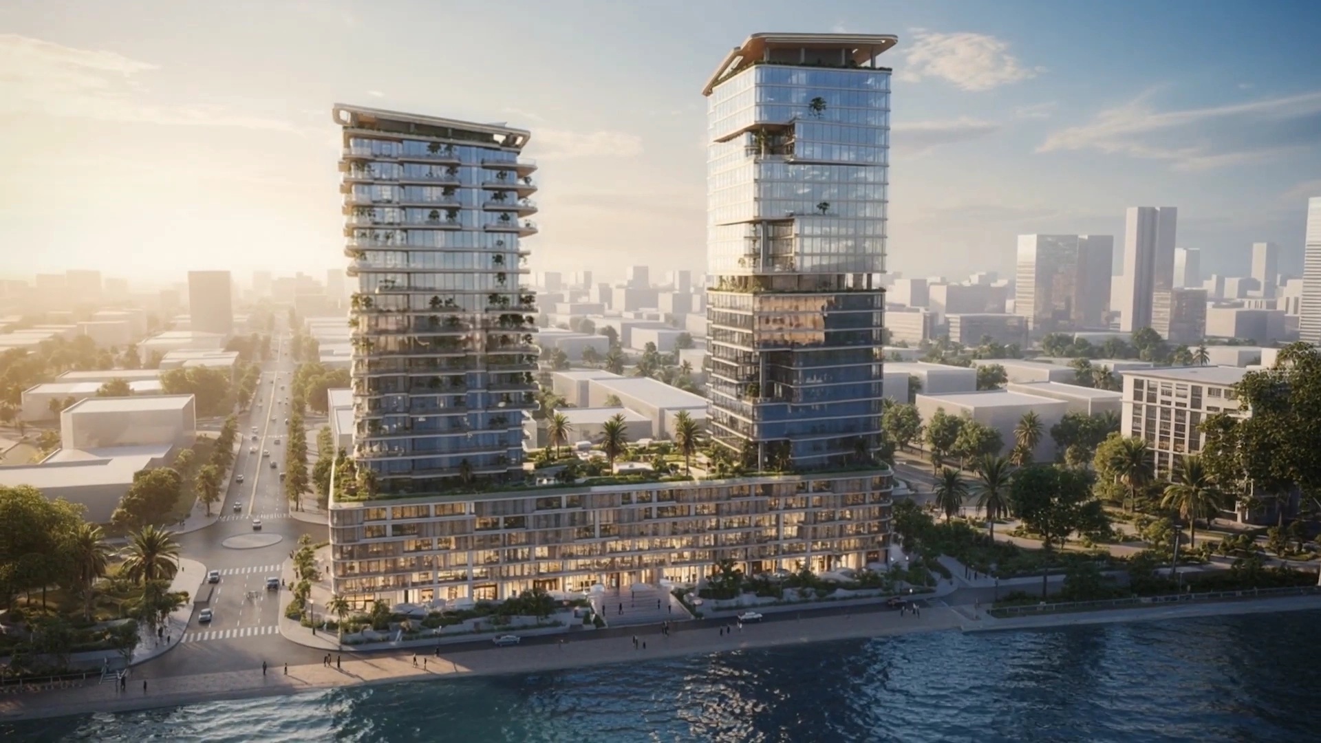 Infinity pools, gyms, sports courts, jogging and cycling tracks, kids’ play areas, cafés, restaurants, beach access, healthcare centers, mosques and green spaces.