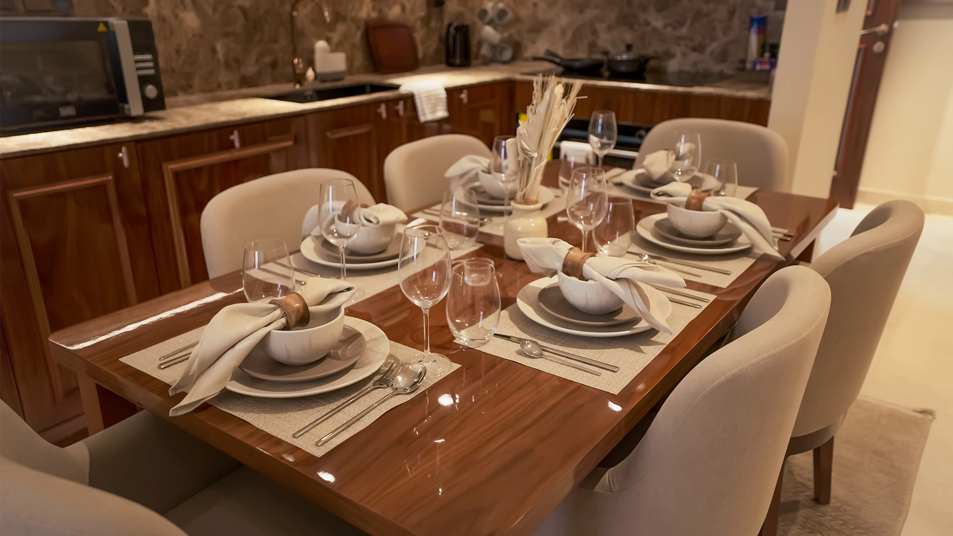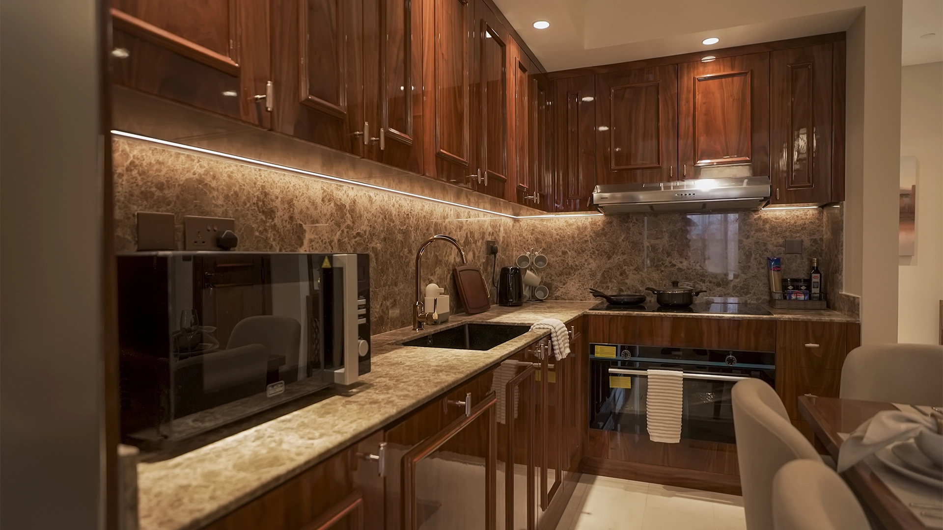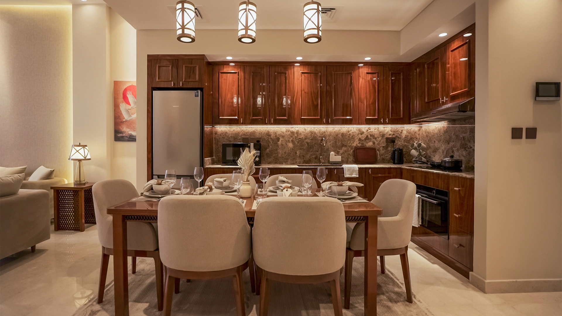 Yes, residences are described as fully furnished with high-quality materials.